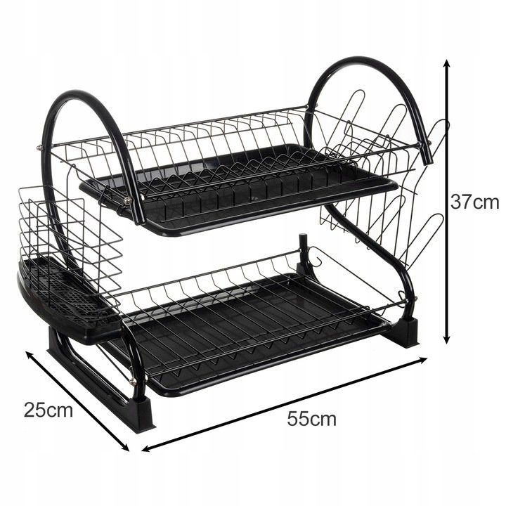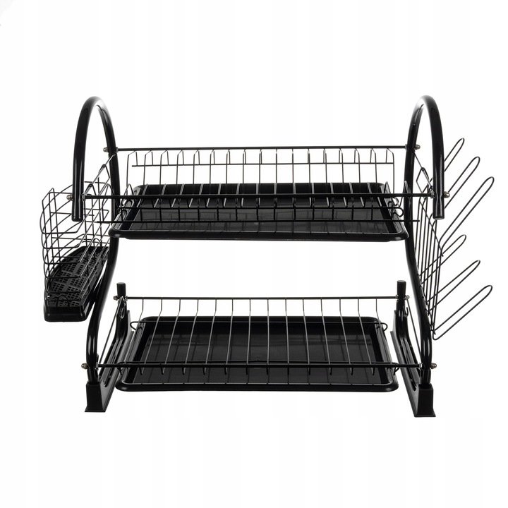 Dvojúrovňový stojan na sušenie riadu s dvoma bočnými madlami sa skvele hodí do každej kuchyne, ako doma, tak v malých reštauráciách. Ide o ideálne riešenie do kuchyne, kde je dôležité maximálne využitie priestoru. Vďaka svojmu kompaktnému a priestrannému dizajnu sa skvele hodí do bytov s obmedzeným priestorom a svojim elegantným dizajnom sa bude dobre vynímať v moderných interiéroch. Dá sa položiť na kuchynskú linku vedľa drezu alebo do skrinky na sušenie riadu po umytí.