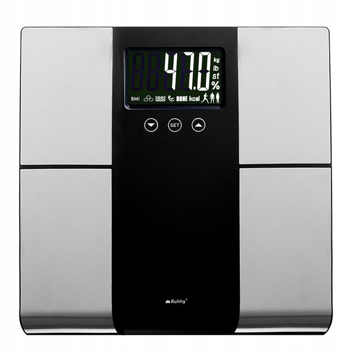 Ruhhy 24638 Analytická osobná váha 225 kg, BMI, strieborná