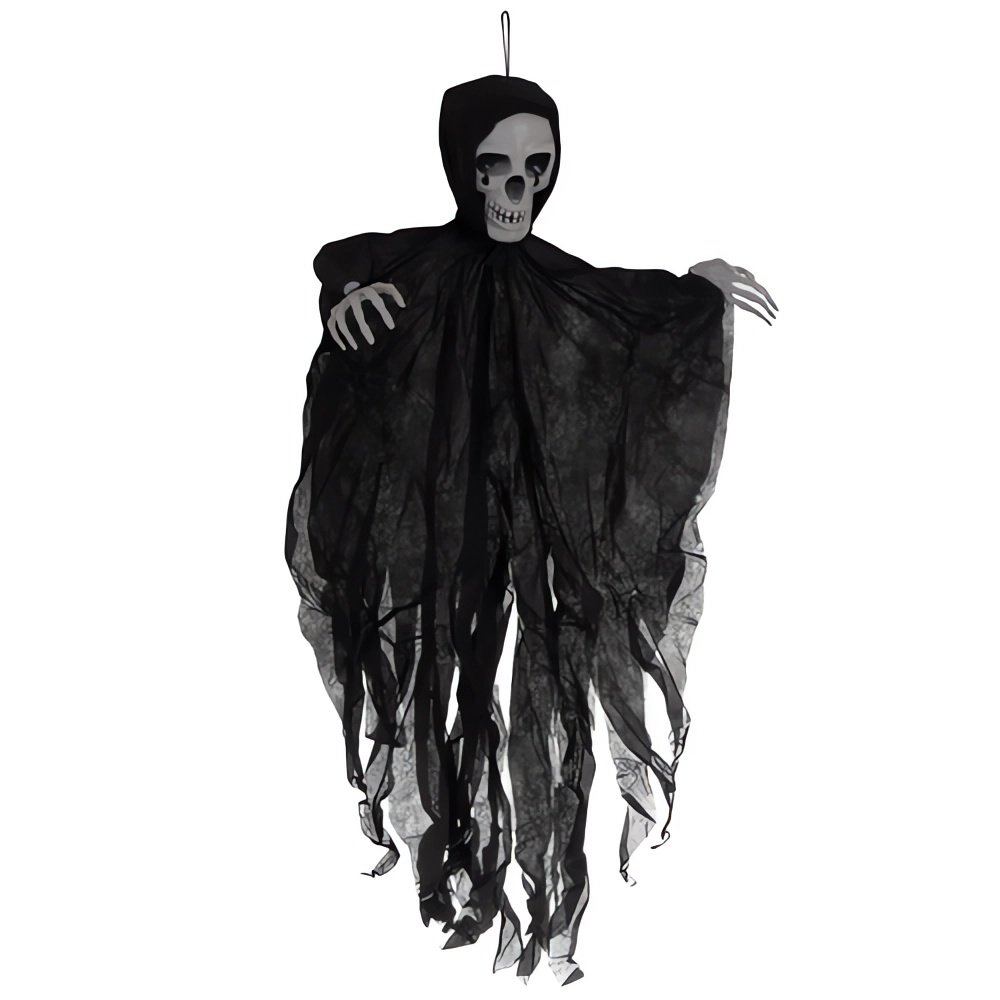 Vytvorte strašidelnú atmosféru s touto závesnou dekoráciou s hlavou kostlivca! Ideálny doplnok na Halloween, večierky alebo tematické dekorácie interiéru a exteriéru. Biely kostlivec so zahaleným telom a realistickou lebkou dodá vášmu priestoru nádych tajomna. Vďaka pútku ju môžete ľahko zavesiť na strop, dvere alebo strom.