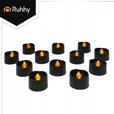 Ruhhy 26128 Sada LED sviečok na batérie 3,6 cm, 12 ks, čierna