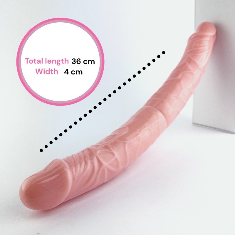 Zatvorte oči a predstavte si pocit naplnenia - spredu aj zozadu zároveň. Tento dlhý realistický penis z lekárskeho silikónu vám umožní experimentovať podľa vlastných predstáv - sólo alebo s partnerom. Dokonale vytvarovaný z oboch koncov je navrhnutý tak, aby rozpálil vaše zmysly.