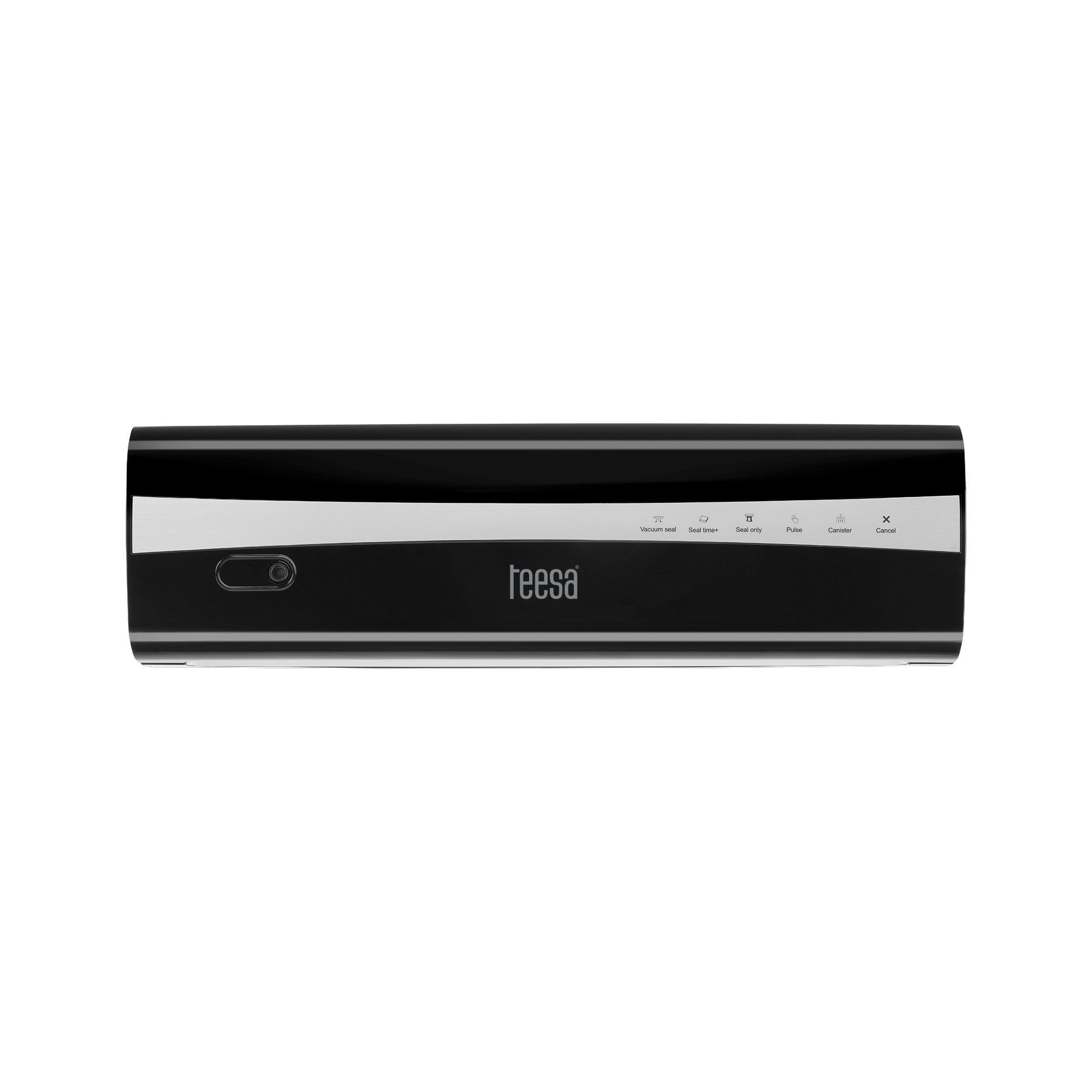 Dotykový ovládací panel Teesa V200 spája moderný dizajn s jednoduchým používaním. Umožňuje výber funkcií, ako napr: Vacuum Seal (odsávanie a utesnenie), Seal Only (iba utesnenie), Seal Time+ (predĺženie času utesnenia), Pulse (ručné odsávanie), Container (pre vákuové nádoby) a Cancel (zrušiť). Vďaka prehľadným ikonám a podsvieteným tlačidlám je ovládanie zariadenia rýchle a intuitívne. Panel umožňuje presné nastavenie prevádzkového režimu podľa typu balených potravín.