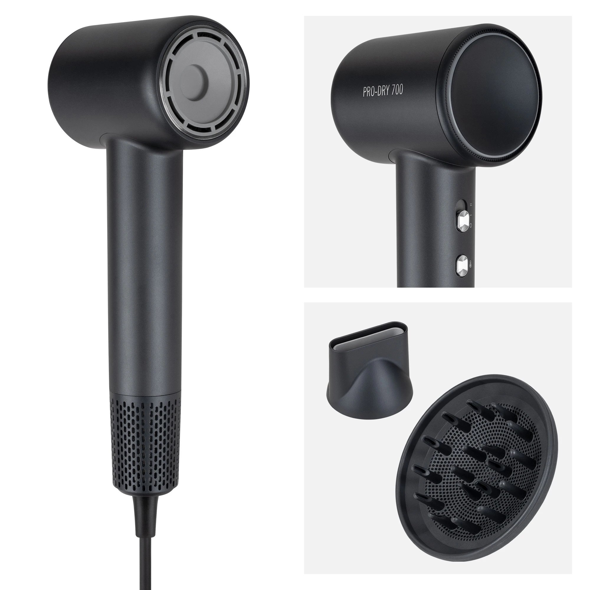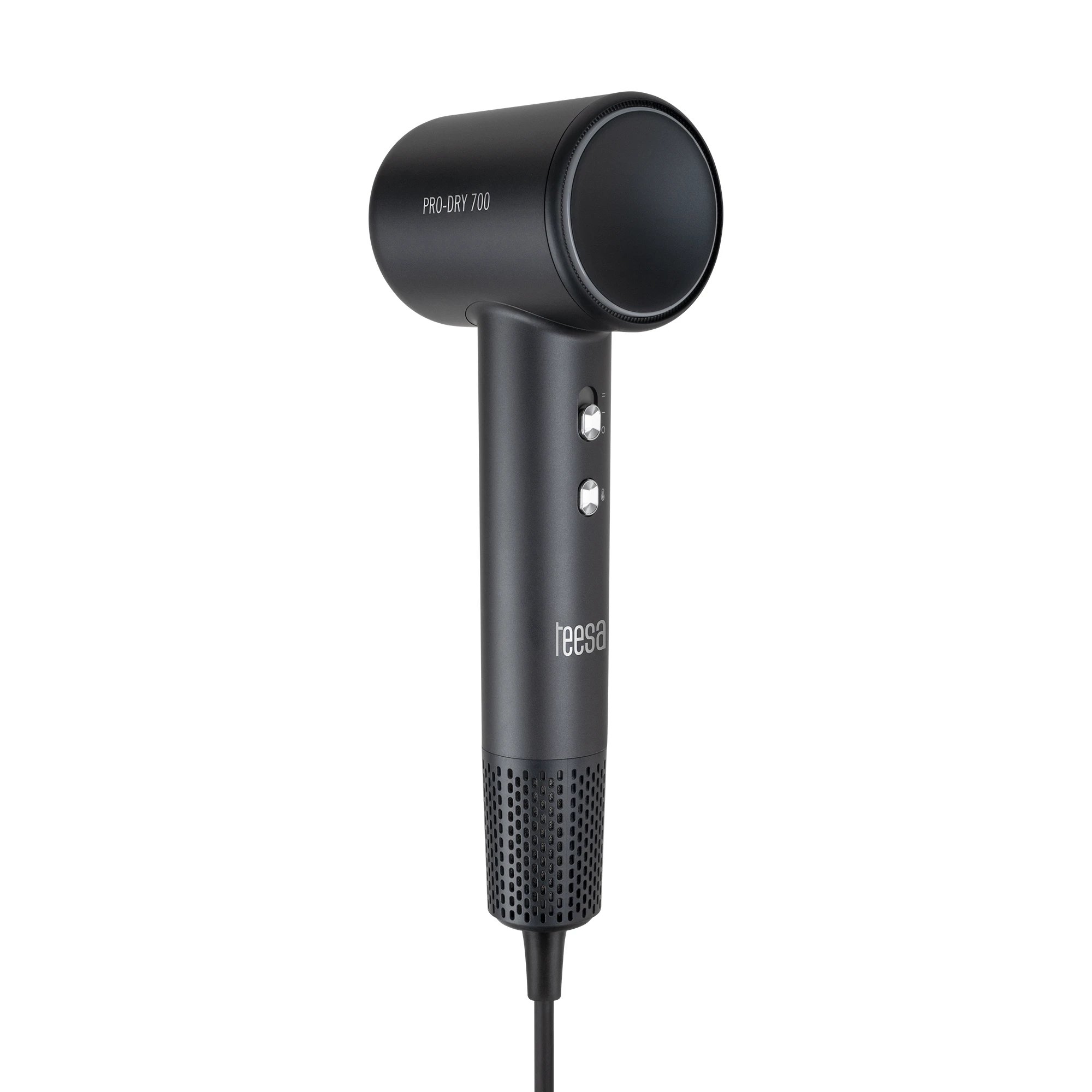 Fén Teesa PRO DRY 700 v čiernom vyhotovení ponúka inteligentnú reguláciu teploty a bezkefový motor. Vďaka maximálnemu výkonu 1600 W a otáčkam motora až 108 000 ot./min dosahuje rýchlosť prúdu vzduchu 23 m/s. K dispozícii je funkcia ionizácie a prehľadný LED indikátor teploty.