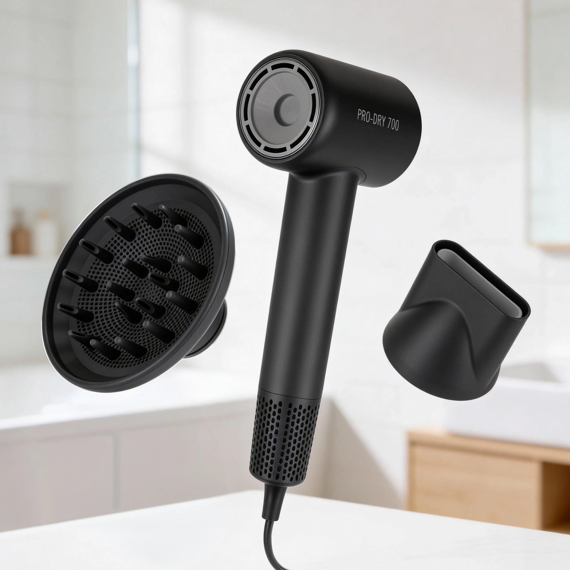 Napájanie je zo siete 220–240 V; 50/60 Hz. V balení nájdete koncentrátor na styling a difúzer. Samotný sušič má hmotnosť 500 g a rozmery 25 × 9 × 7 cm.