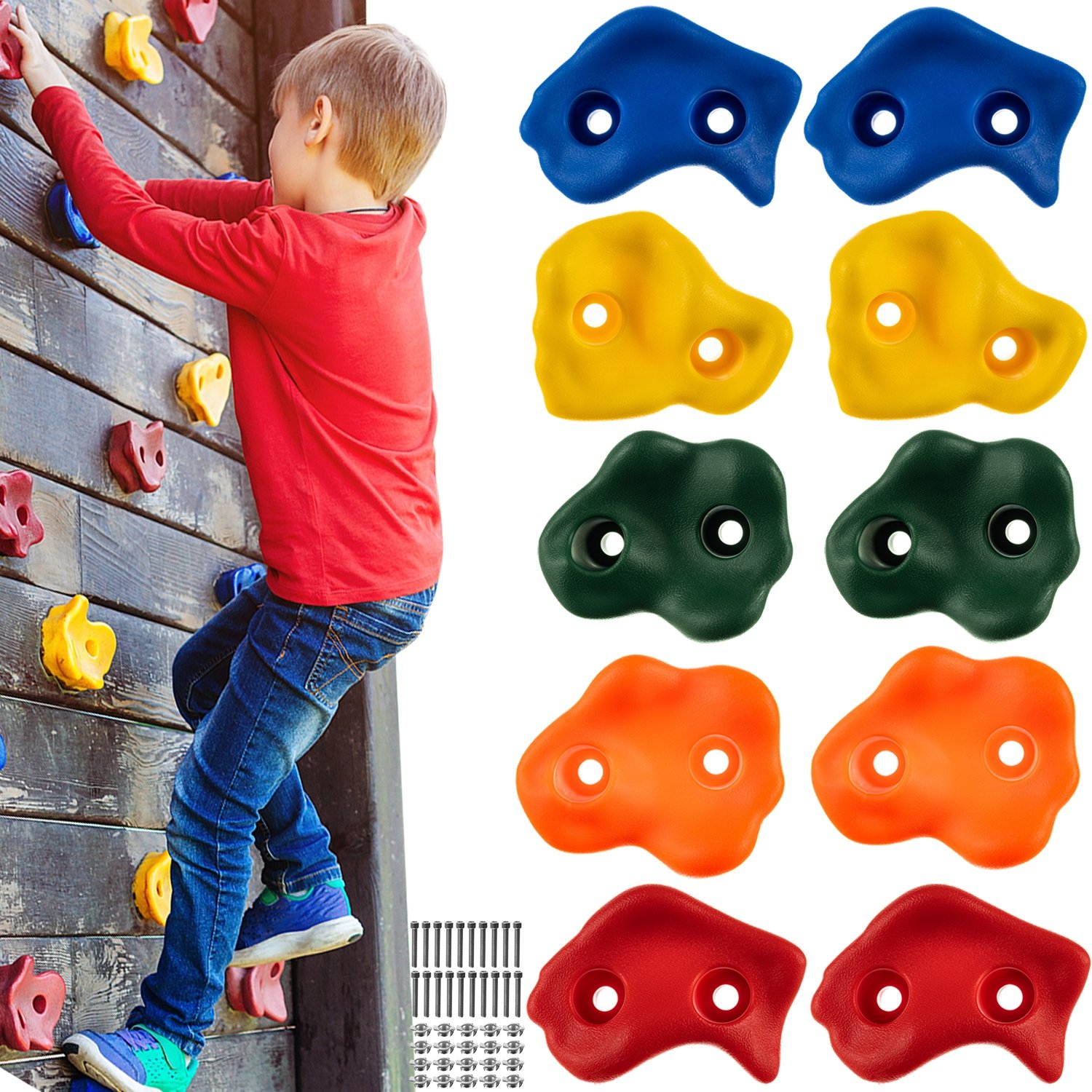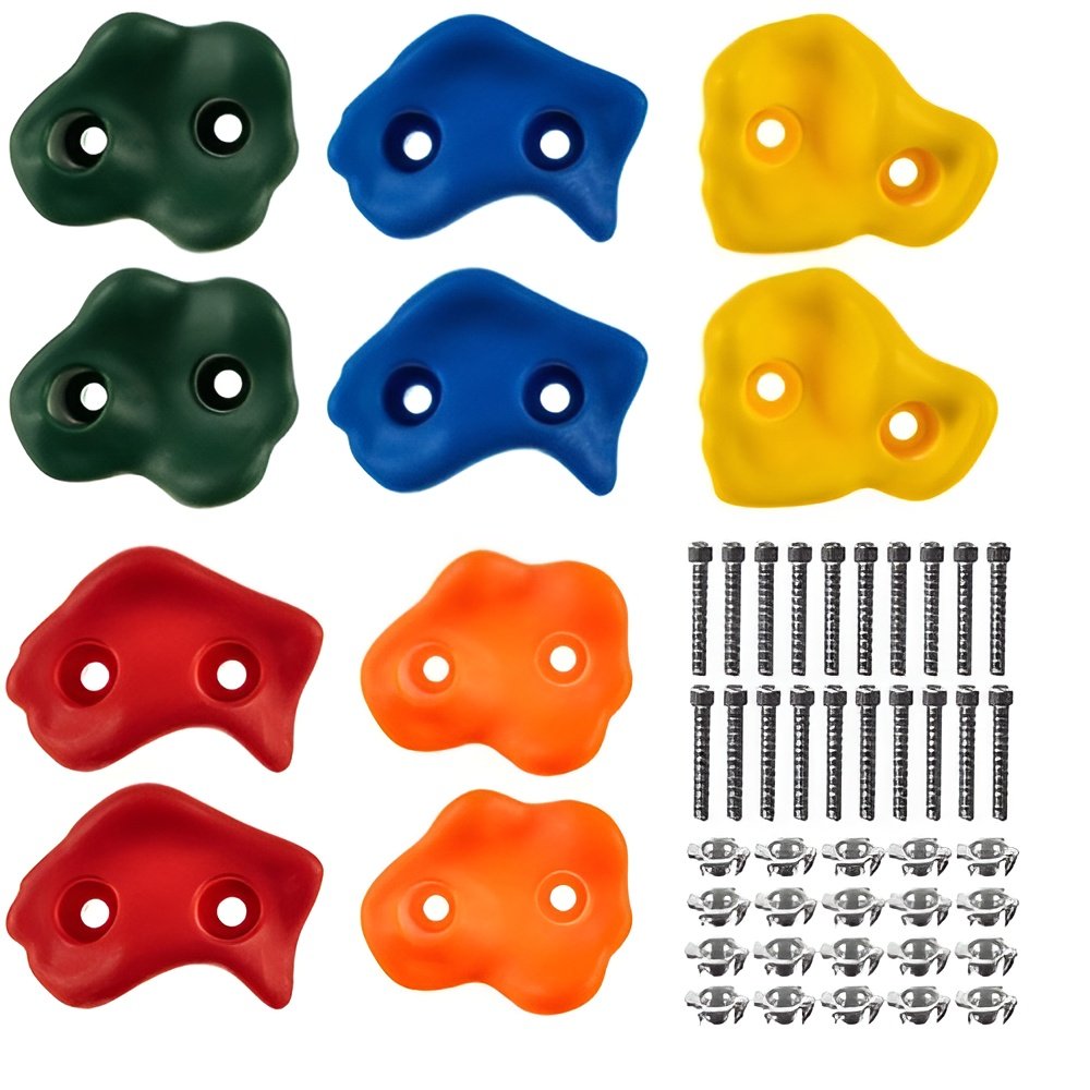 Balenie obsahuje 10 lezeckých chytov a 20 skrutiek pre jednoduchú a bezpečnú inštaláciu.