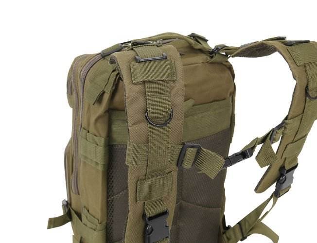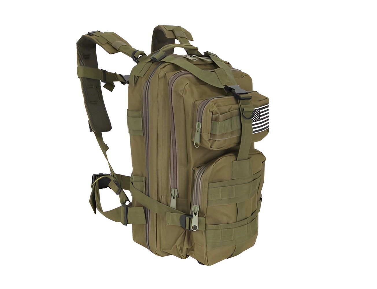 Vojensko-survivalový batoh s objemom 26 litrov je model, ktorý umožňuje perfektné padnutie každému! Skvele sa hodí na výlety do hôr, ale nielen to, batoh je možné využiť aj na každodenné použitie napr. do školy. Je vyrobená z odolného, vodeodolného materiálu, odolného proti roztrhnutiu a oderu. Batoh má madlo, ktoré umožňuje pohodlné prenášanie.