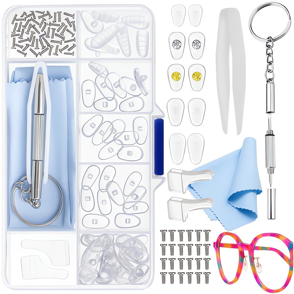 Súprava na opravu okuliarov obsahuje všetky najčastejšie potrebné položky, aby ste si mohli sami opraviť väčšinu chýb okuliarov.