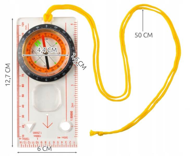 S touto busolou sa nikdy nestratíte. Má lupu, delenú stupnicu a pravítko. Je zavesená na šnúrke, takže ju môžete mať na krku, a teda vždy na očiach.
