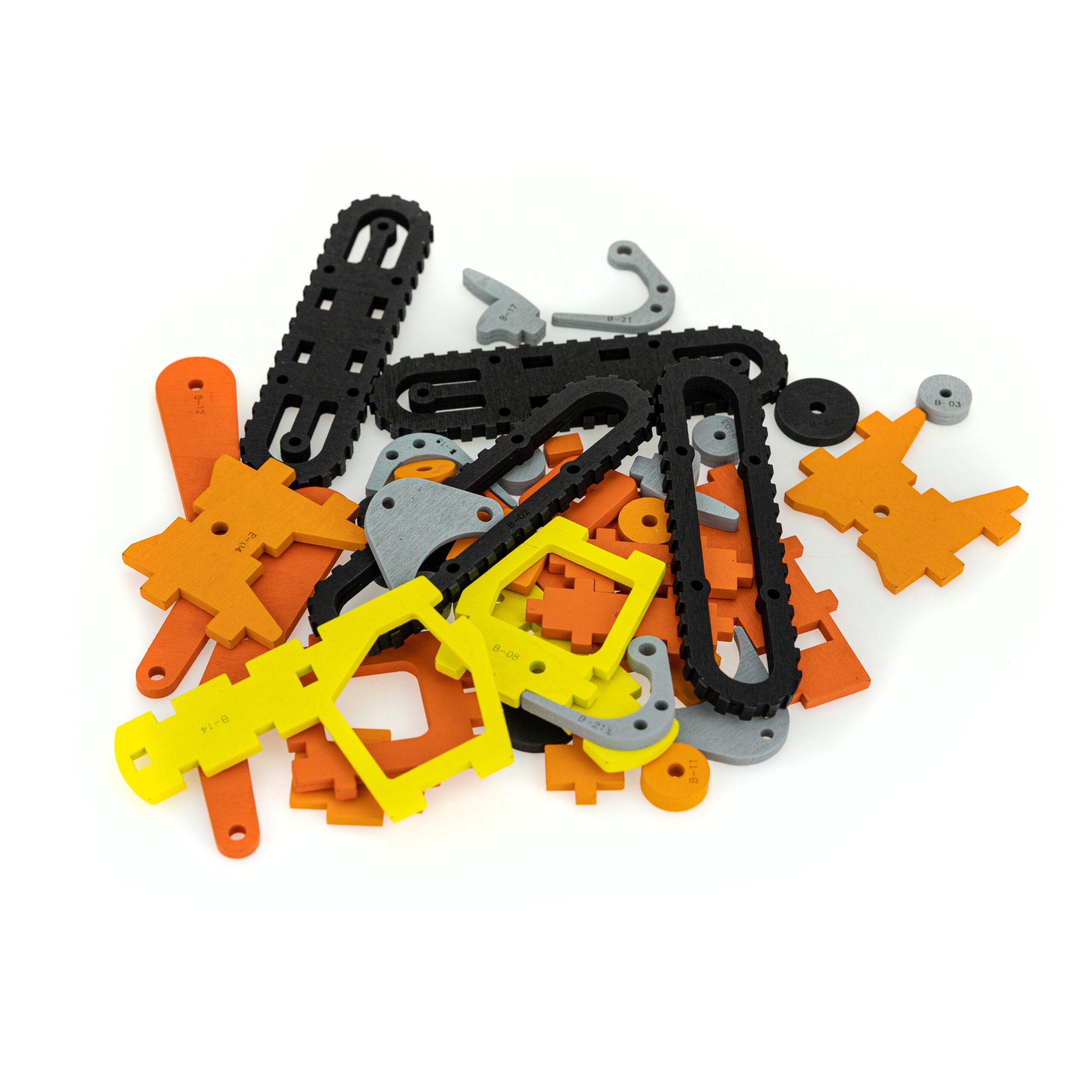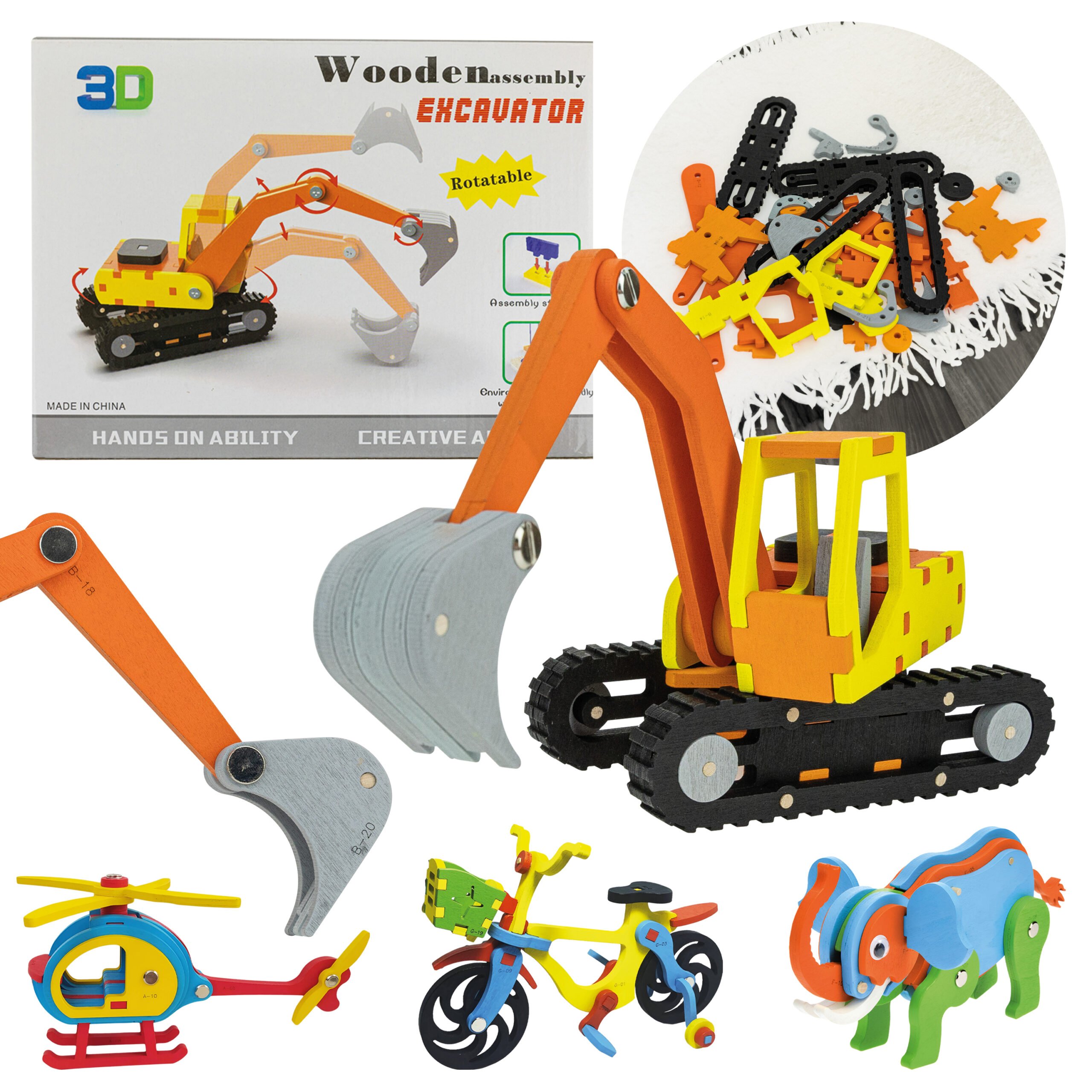 Už od útleho veku je hra veľmi dôležitým prvkom pri výchove detí. Rozvíja zmysly, predstavivosť, motoriku a tiež učí a baví. Pri výbere hračiek sa oplatí zvážiť nielen ich účel, ale aj materiál, z ktorého sú vyrobené. Drevo je najprirodzenejšou a najekologickejšou surovinou na výrobu hračiek. Drevené hračky majú väčšinou jednoduchý tvar. Sú odolné proti poškodeniu a bezpečné pri používaní. Naša aukcia ponúka na výber 4 modely figúrok drevených konštrukcií - bager, bicykel, slon, vrtuľník. Pre rodičov a deti je to skvelý spôsob, ako spolu tráviť čas a skvele sa baviť. Každá sada sa skladá z niekoľkých desiatok dielov - drevených blokov a kovových skrutiek. Všetko je zoskrutkované pomocou malého skrutkovača, ktorý je súčasťou konštrukcie. Súprava obsahuje podrobný návod s označením jednotlivých prvkov, ktorý pomôže pri zostavení figúrky. Celé je vyvedené v živých farbách, ktoré určite upútajú pozornosť každého dieťaťa. Boky a hrany boli starostlivo vyleštené, aby boli bezpečné pri hraní. Hračka umožňuje vášmu dieťaťu naučiť sa mnoho nových zručností, ako je rozpoznávanie a spájanie tvarov a farieb. Pomôže vám to naučiť sa trpezlivosti a obratnosti. Bude rozvíjať detskú fantáziu a kreativitu