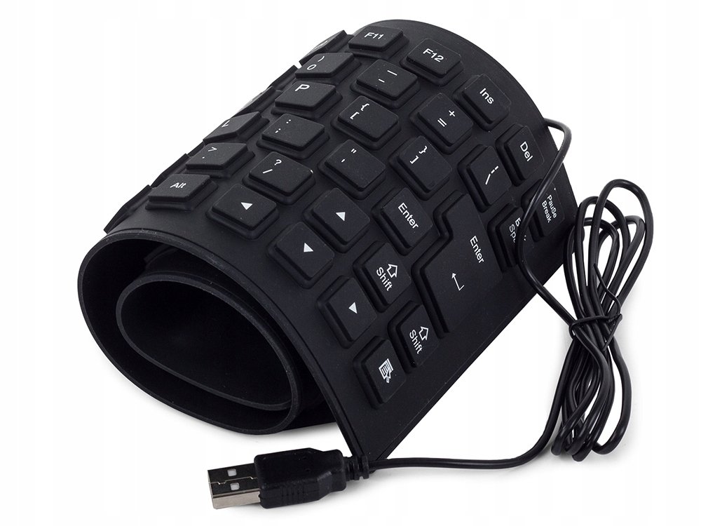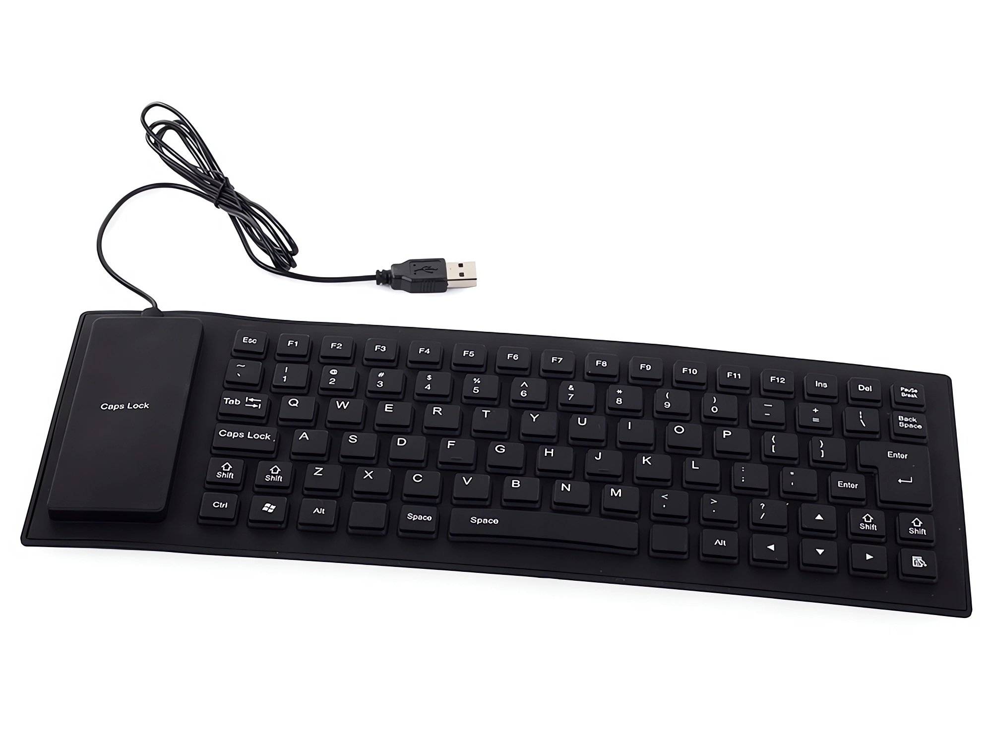 Silikónová flexibilná klávesnica, ktorú môžete pripojiť cez USB k počítaču. S touto inovatívne klávesnicou môžete pracovať kedykoľvek a kdekoľvek, je odolná proti vode, prachu a je ohybná. Táto pozoruhodná mäkká silikónová klávesnica môže byť tiež zrolovaná a použitá ako cestovný spoločník k vášmu notebooku.