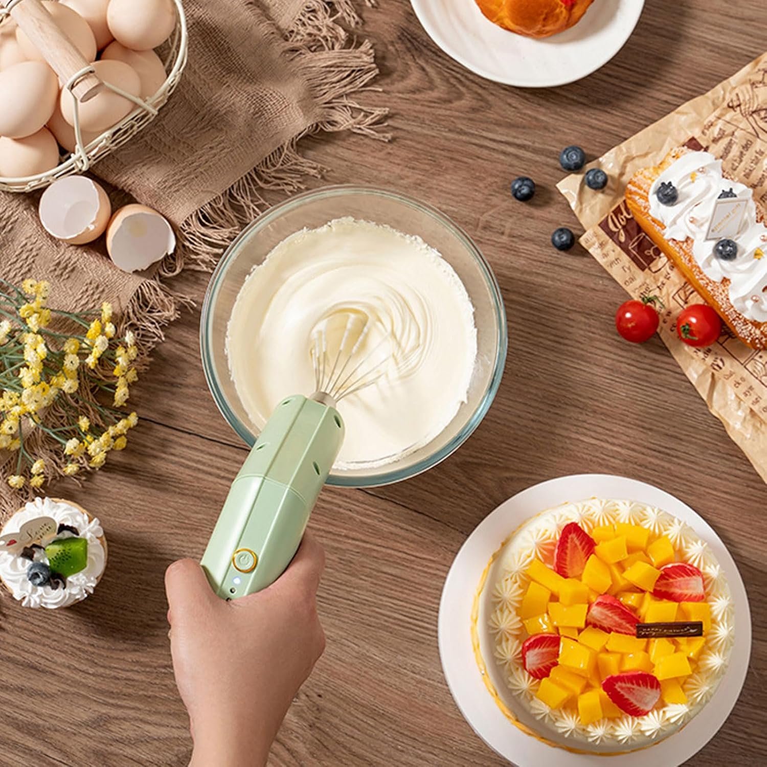 Je malý, kompaktný a ľahký, ale dostatočne výkonný, aby vytvoril krémovú penu na pečenie. Šľahač je možné otočiť do dvoch polôh pre pohodlnejšiu prácu.