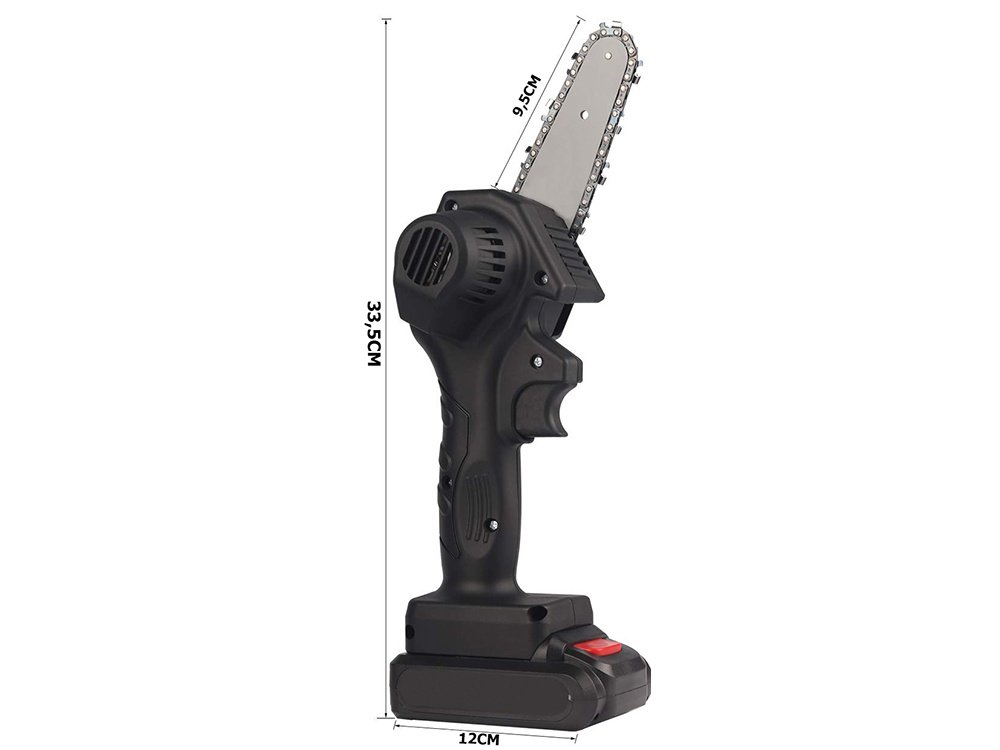 Ergonomicky a váhovo veľmi príjemná reťazová aku píla mini s protišmykovou rukoväťou je výborným pomocníkom na prierez náletových drevín, kríkov, viníc i ťažko prístupných miest.