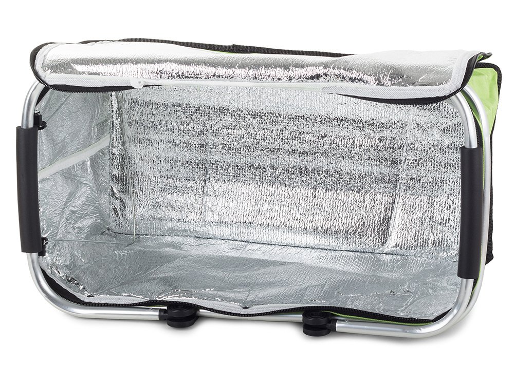 Termoizolačný piknikový košík so skladacím rámom. Udržuje nápoje chladné a ovocie a občerstvenie šťavnaté.