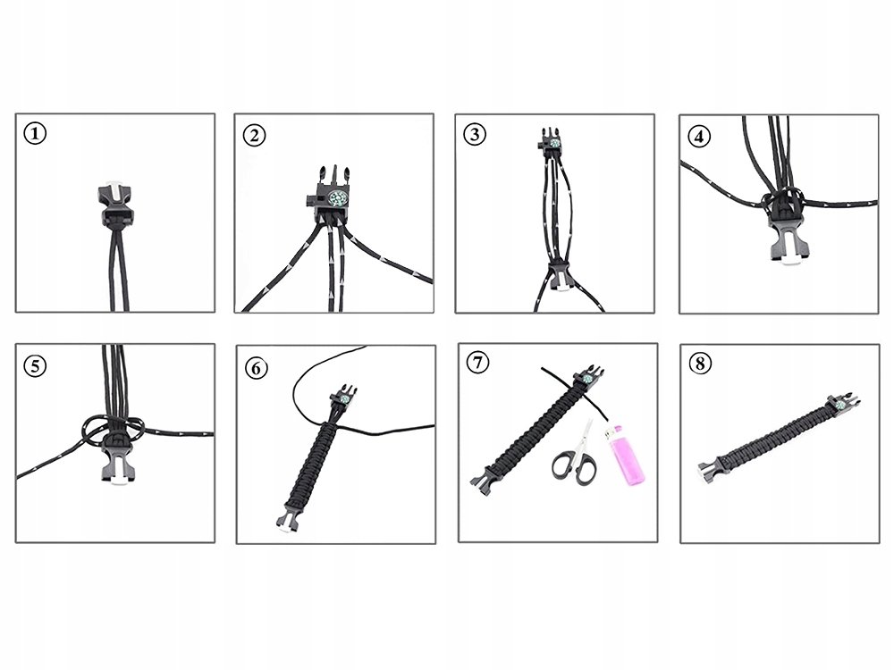 Náramky z padákovej šnúry (paracord náramky) sú postupom času čím ďalej tým viac populárnejšie. Nielen že je tento náramok skvelým outdoor doplnkom, ale koľkokrát by Vám mohol zachrániť aj život. Náramok stačí rozpliesť a máte k dispozícii tú najpevnejšiu šnúru, šnúru z padáku. V plastovej spone máte aj zabudované kresadlo, rozloženie ohňa v ťažkostiach Vás môže úviesť do bezpečia.