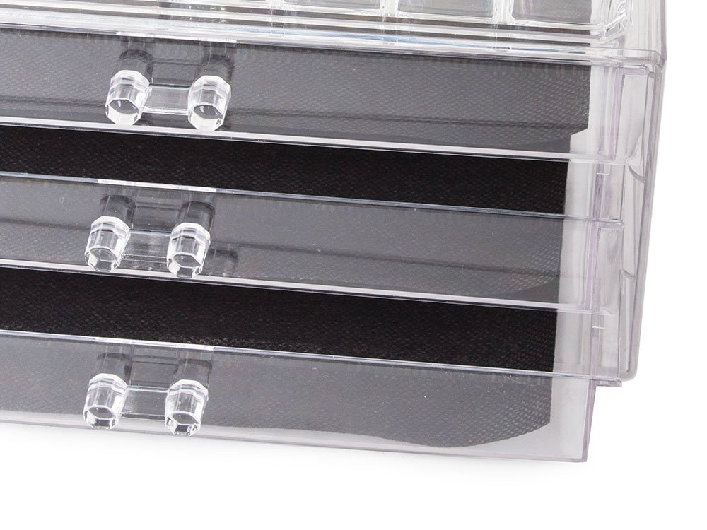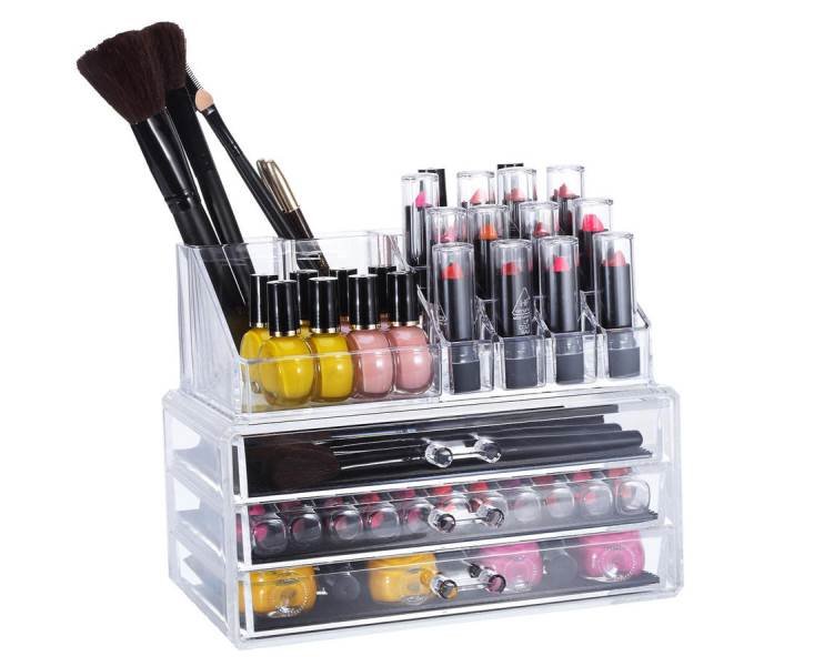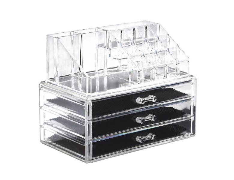 Priehľadný ogranizérom na kozmetiku je nutnosťou pre každú kozmetickú nadšenkyne. Vďaka veľkému úložnému priestoru už nebudete mať v kozmetike neporiadok a všetko bude ihneď po ruke.