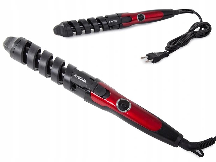 Špirálovitá kulma na vlasy NOVA NHC-2007A. Kulma má keramickú tyč, ktorá má lepšiu ovládateľnosť vďaka antistatickému efektu, vlasy nevysušuje a zostávajú hodvábne a lesklé.