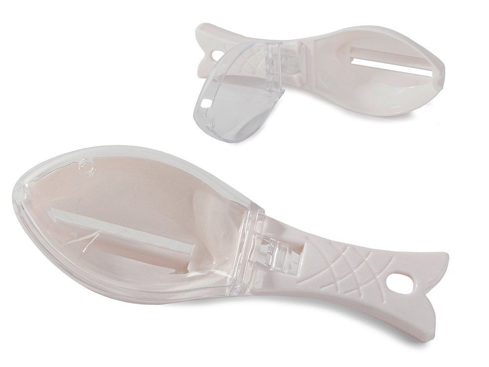 Rýchle a jednoduché odstránenie šupín! Tento pomocník na odstránenie šupín so zásobníkom na zber šupín využijete pri príprave rýb počas Vianoc i celého roka. Stačí s ním jazdiť po rybe, šupiny odstránite a mäso zostane nedotknuté.