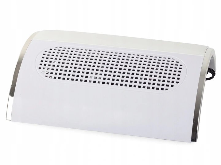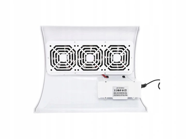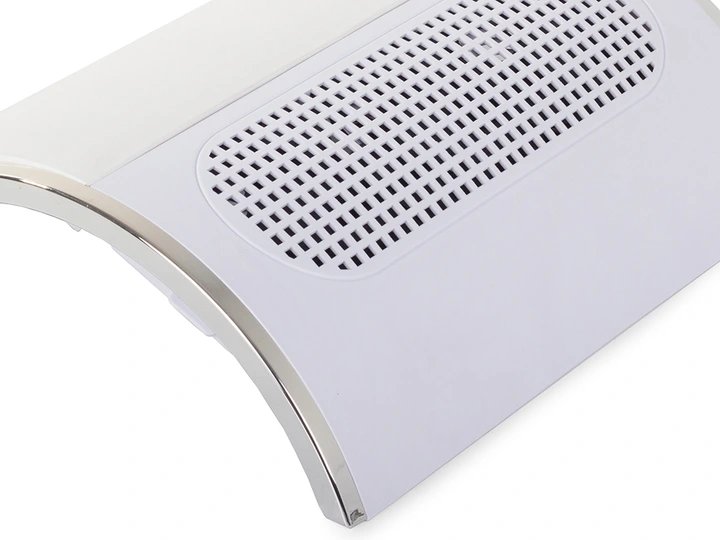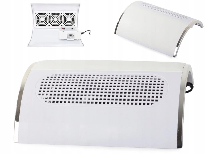 Vysoko výkonný biely vysávač s tromi zabudovanými ventilátormi z bieleho vysokokvalitného plastu zabezpečuje čisté pracovné prostredie bez prachu z modelovania nechtov.