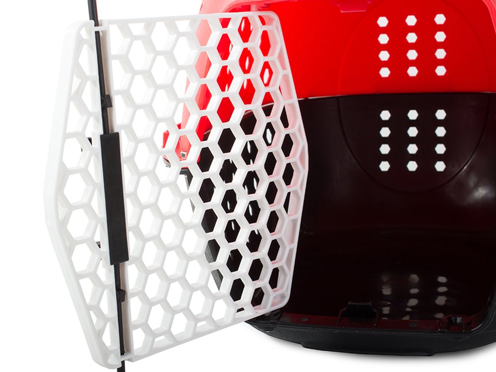 Prepravka je vyrobená z veľmi odolného plastu. Vďaka príprave na upevnenie pomocou autopásu k sedadlu je vhodná na bezpečnú prepravu zvieraťa v aute.