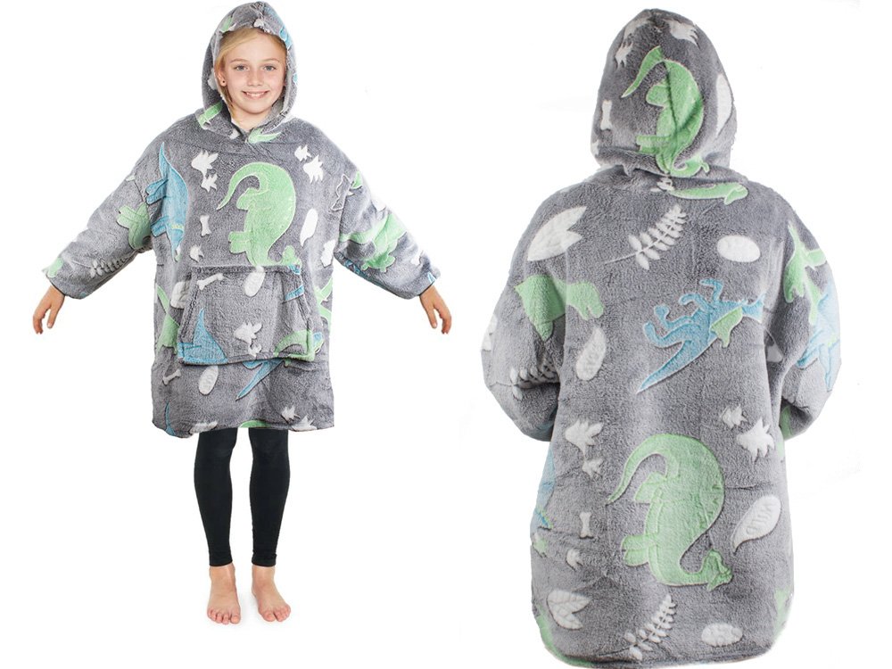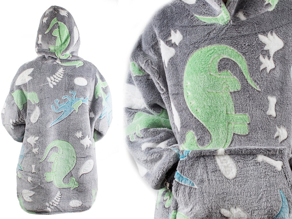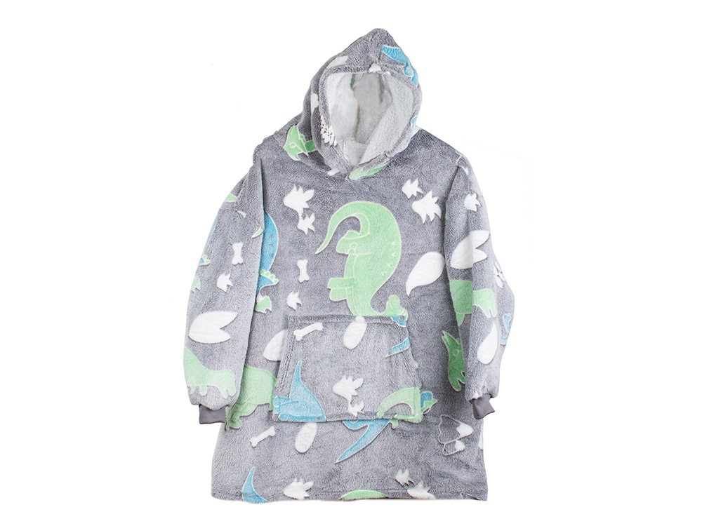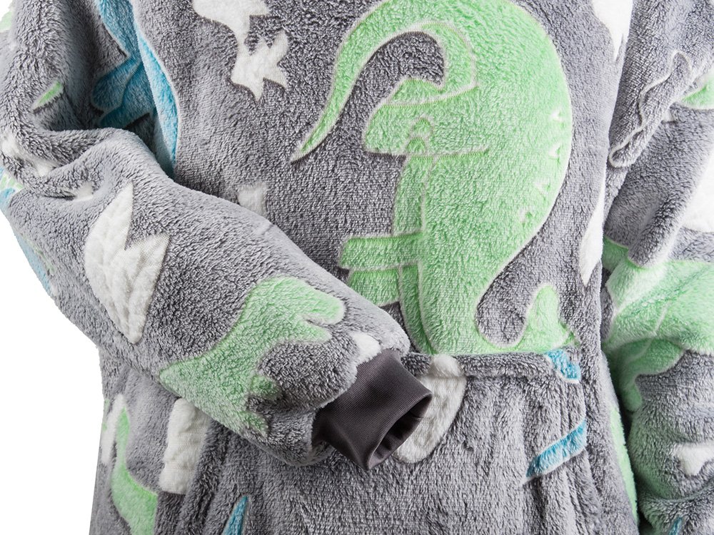 Verk 24305 Svietiaca plyšová mikina s kapucňou dinosaurus - pre deti šedá