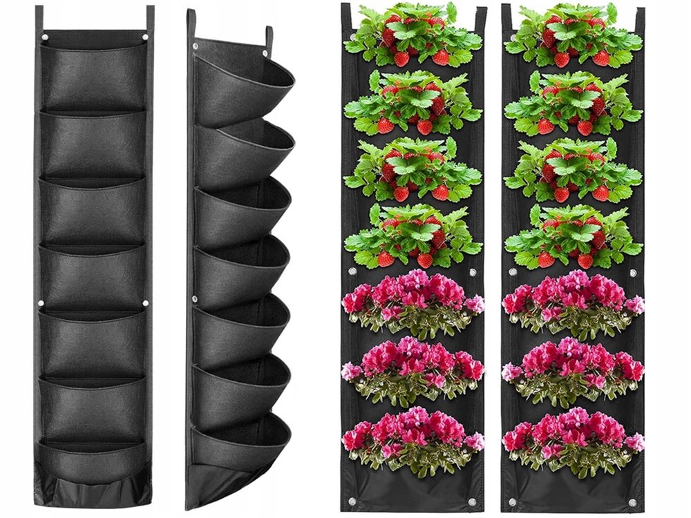 Závesný plstený kvetináč so siedmimi priestrannými vreckami je moderný a jednoduchý spôsob, ako vytvoriť malú záhradku na balkóne, terase alebo na stene.