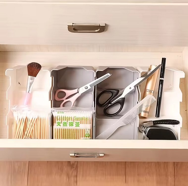 Viacúčelový organizér pozostávajúci z troch poschodí s rôznymi úrovňami. Možno ho použiť na usporiadanie rôznych predmetov osobnej starostlivosti, oblečenia, kuchynského náčinia atď