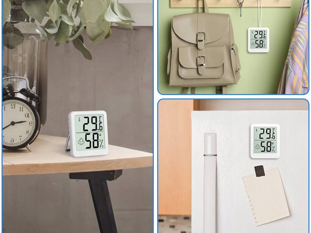 Vnútorná elektronická meteostanica so zabudovaným snímačom teploty a vlhkomerom - mimoriadne užitočná v každej domácnosti, najmä v detskej izbe, kde je dôležité udržiavať správnu teplotu a vlhkosť. Teplomer má čitateľný LCD displej, ktorý zobrazuje všetky najdôležitejšie merania a celkový komfort v miestnosti. Pohodlná inštalácia vďaka samolepiacemu prúžku na zadnej strane krytu.