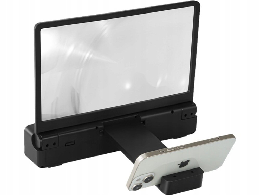 Táto moderná lupa pre smartfóny je dokonalým riešením pre tých, ktorí chcú sledovať filmy, televízne seriály alebo fotografie na veľkej obrazovke bez namáhania očí. Vďaka optickej šošovke, ktorá zväčšuje zobrazený obraz až trojnásobne, je každý detail jasnejší a pohodlnejšie sa naň pozerá. Zariadenie kombinuje funkcie držiaka telefónu, reproduktora Bluetooth a hudobného prehrávača USB a FM a ponúka tak kompletné multimediálne centrum v kompaktnom dizajne.